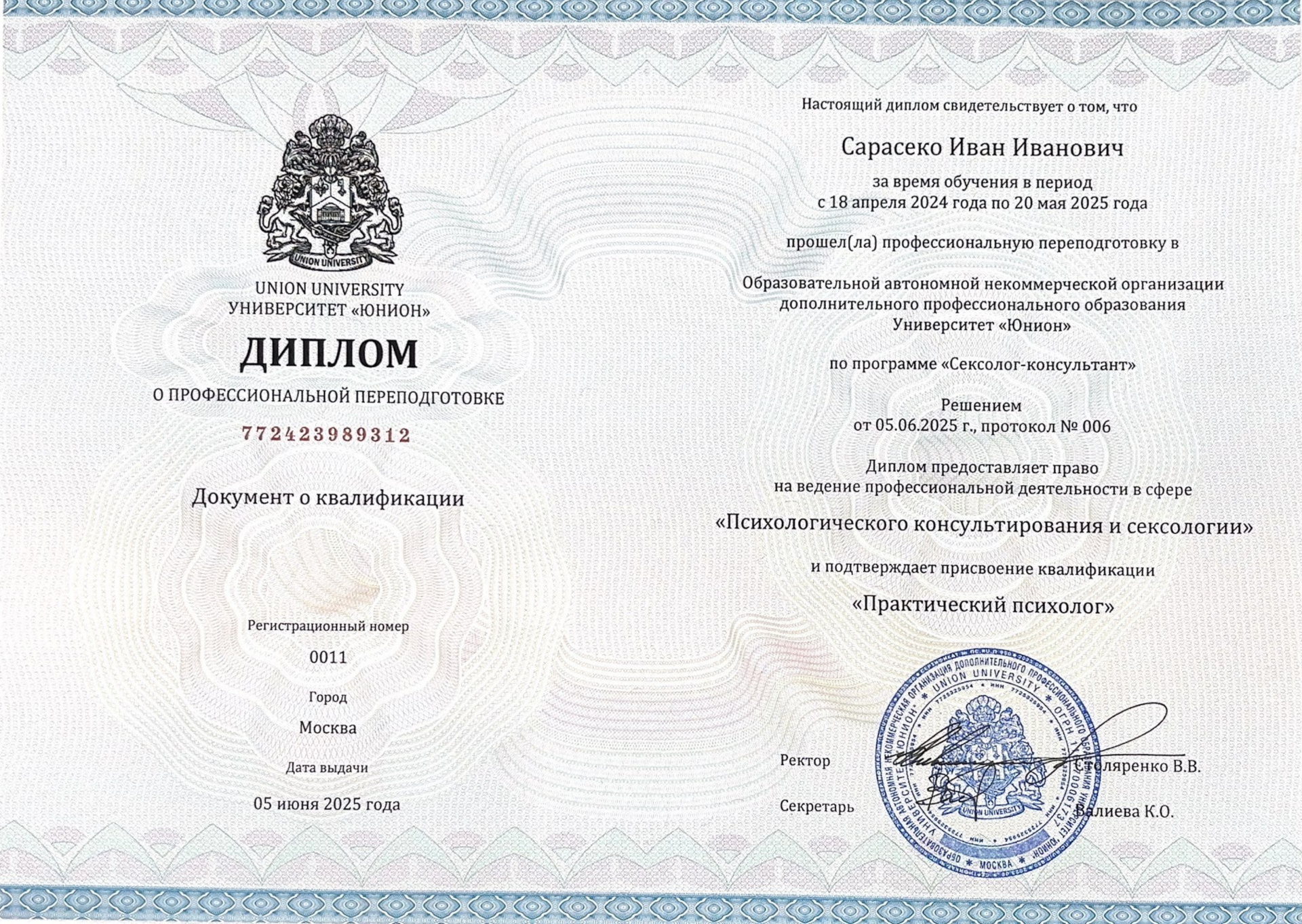 Дипломы и сертификаты